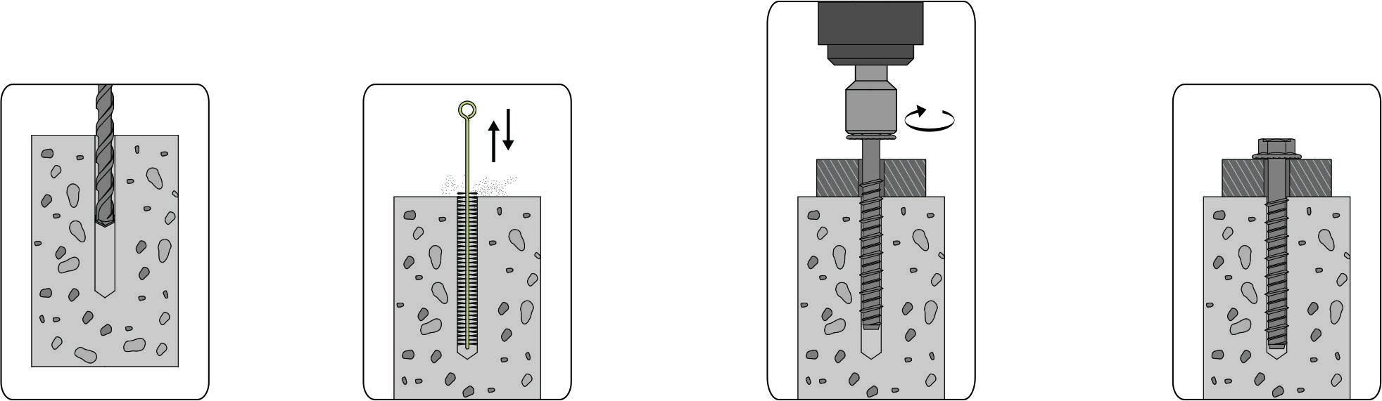 - Монтаж до 2 раз быстрее, чем при использовании распорных анкеров, благодаря меньшему количеству операций.