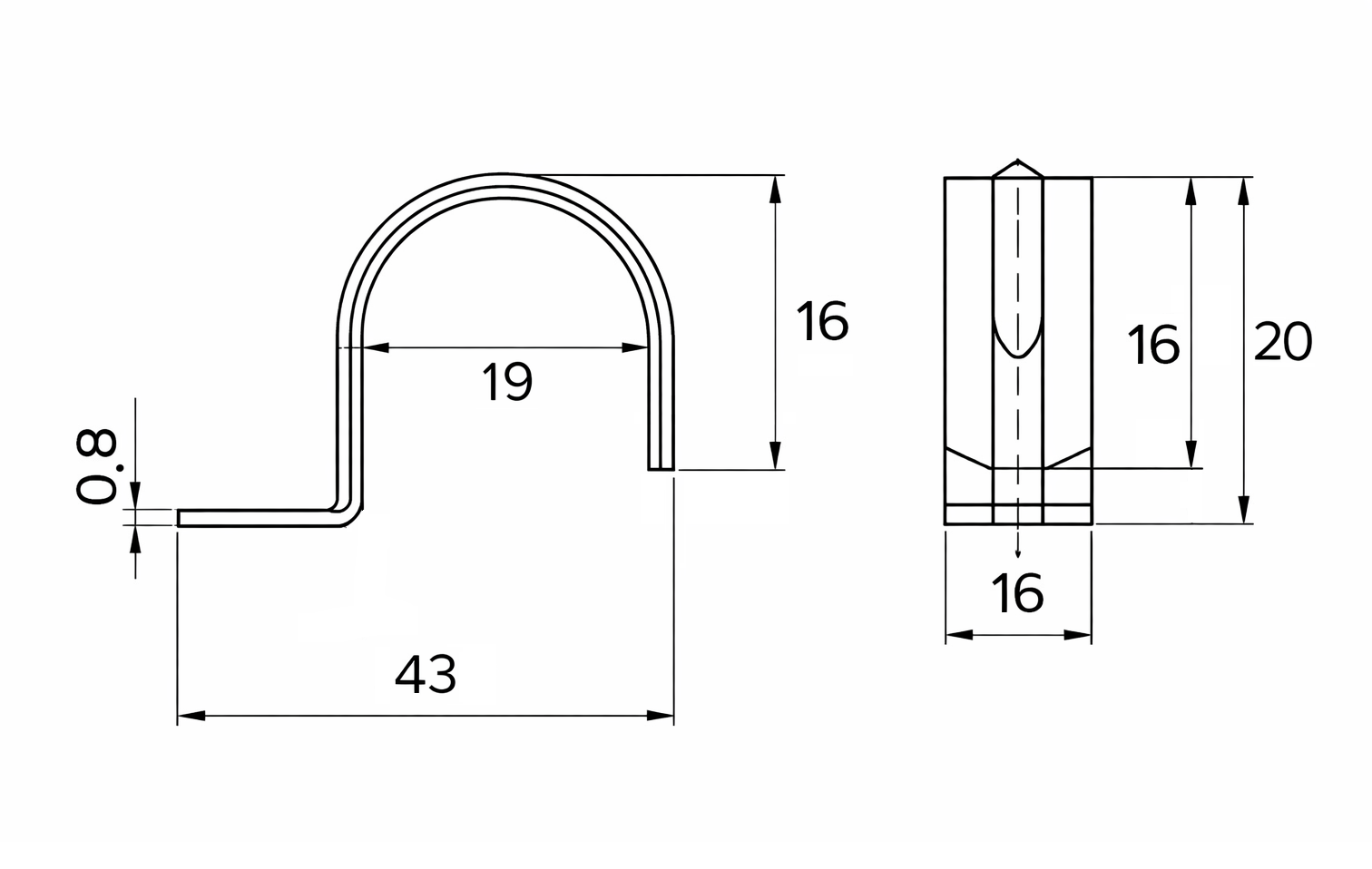 Скоба металлическая для монтажа труб диаметром 19-20 мм
