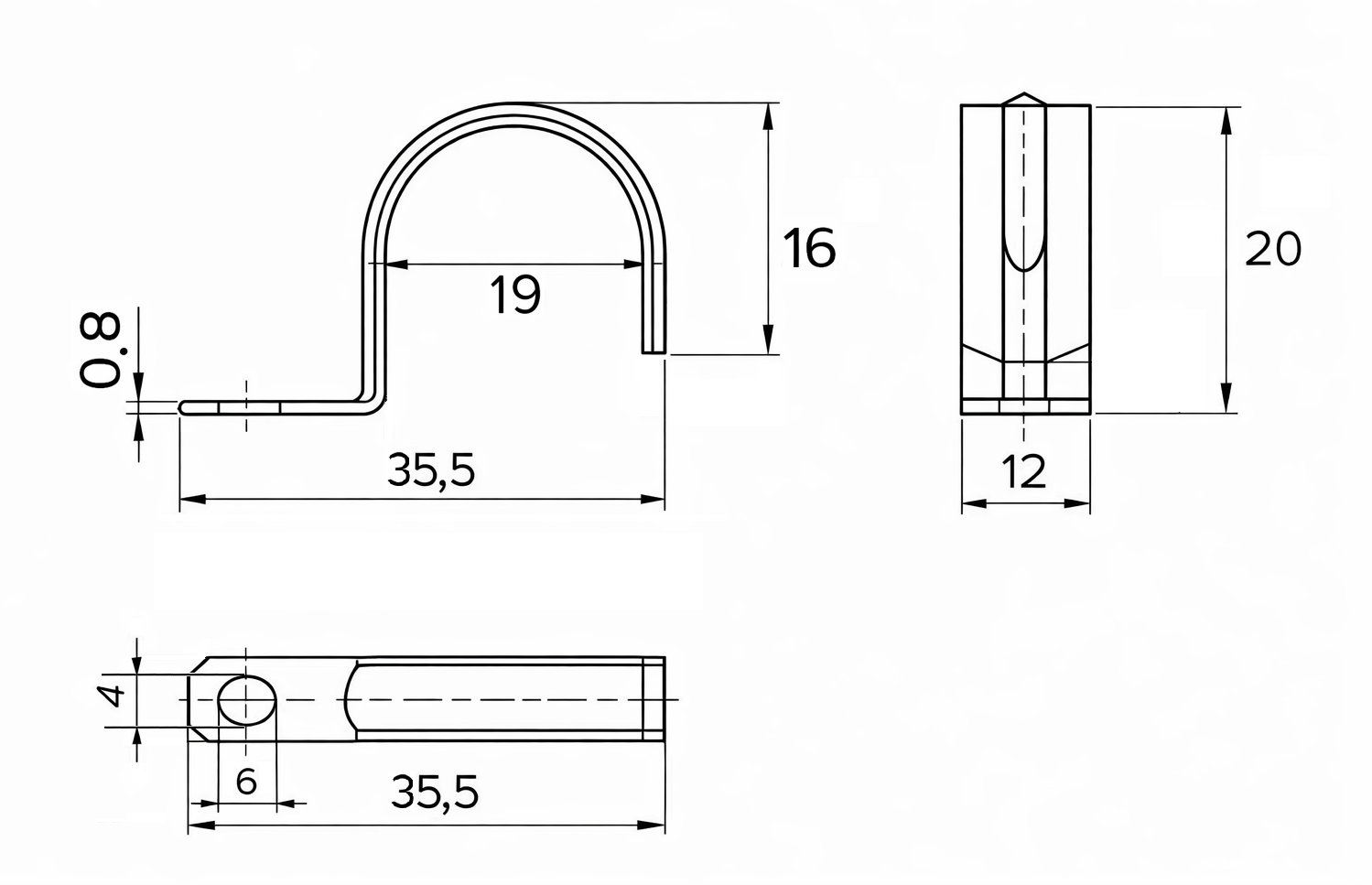 Скоба металлическая для монтажа труб диаметром 19-20 мм