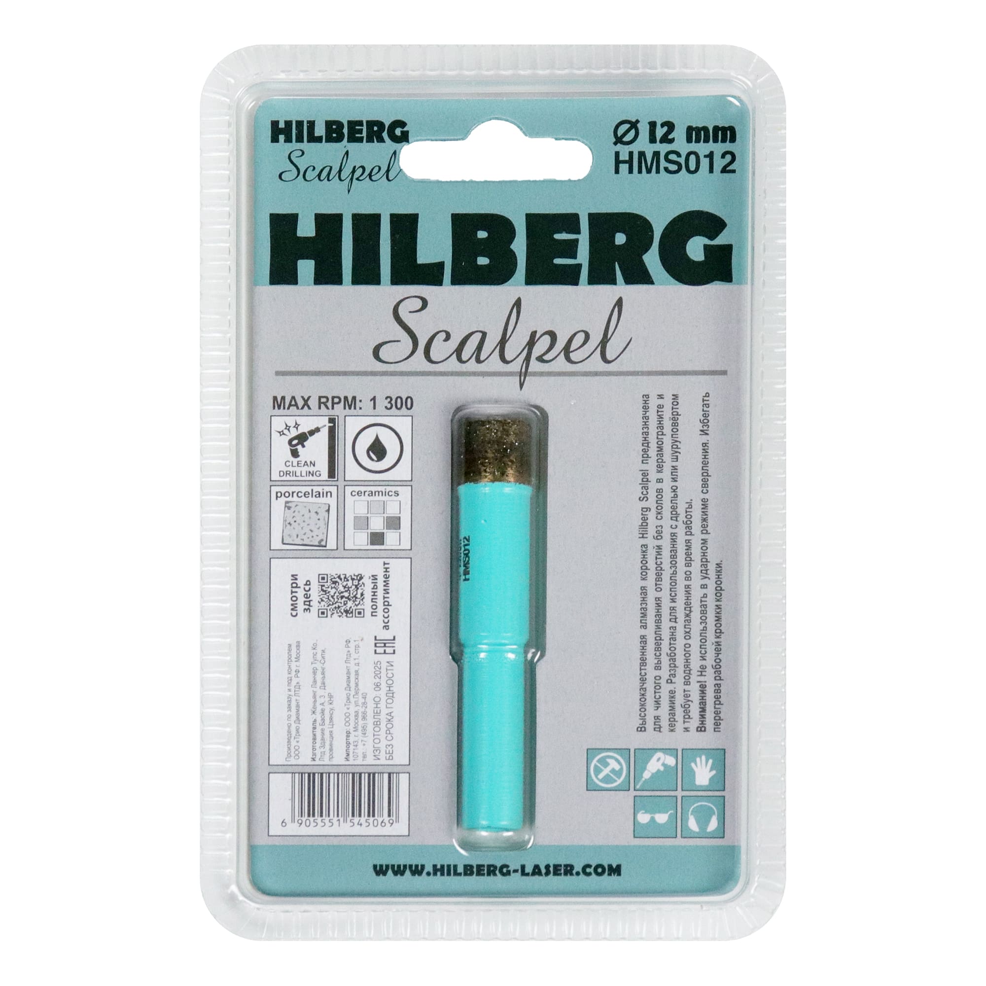 Алмазная коронка Hilberg Scalpel по керамограниту диаметром 12 мм
