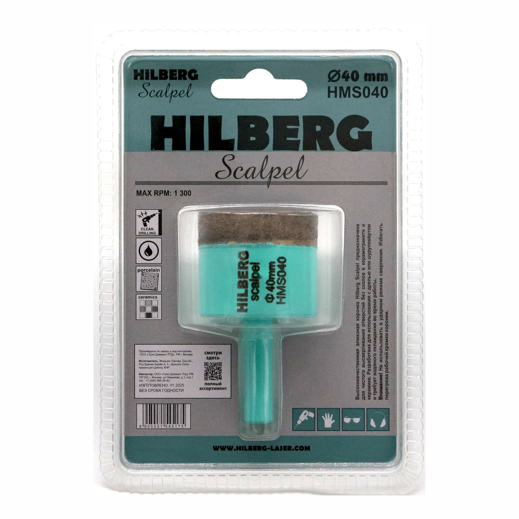 Алмазная коронка Hilberg Scalpel по керамограниту диаметром 40 мм