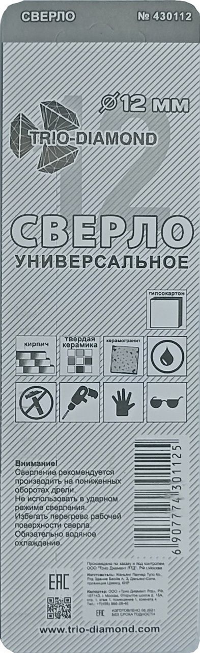 Сверло универсальное 12 мм 430112