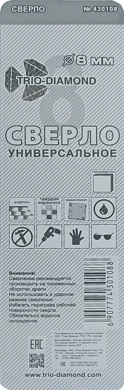 Сверло универсальное 8 мм 430108