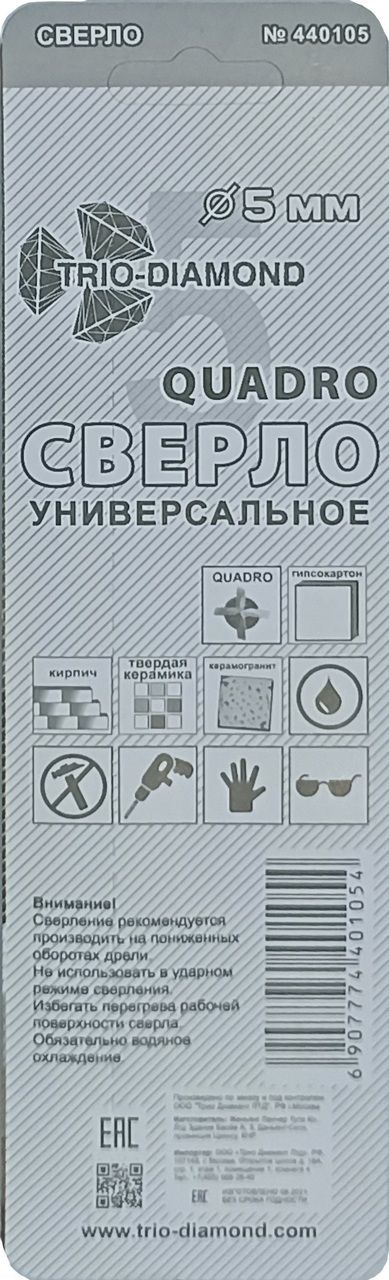 Универсальное сверло диаметром 5 мм для работы с шуруповертом и дрелью
