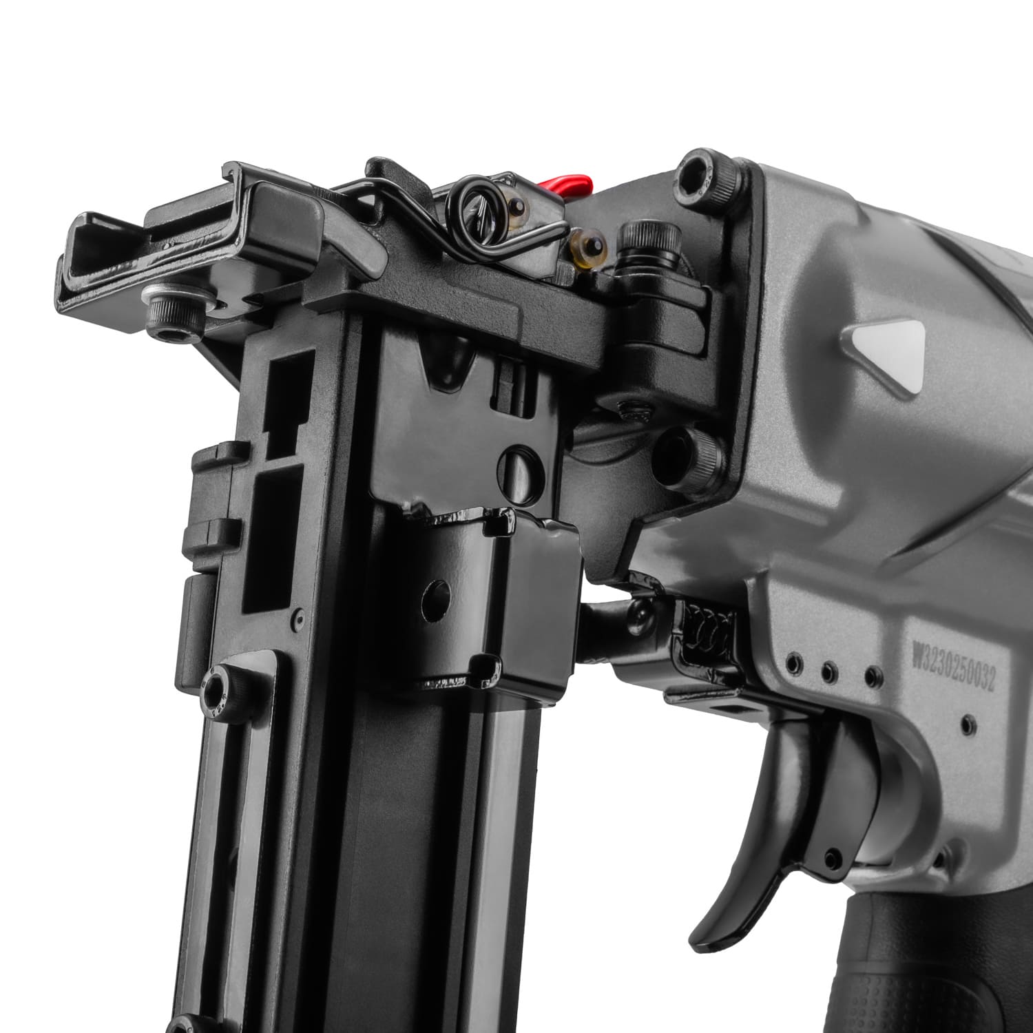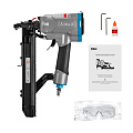 - Лапка для вертикального позиционирования помогает забивать скобы под прямым углом.